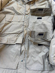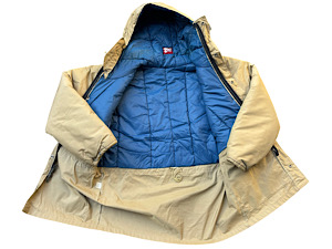 80年代頃 スタッグ トレイル カントリー 中綿マウンテンパーカ 程度はDEADSTOCKにかなり近い状態です。素材は60/40クロス仕様。カラーはベージュ/ネイビー。ネイビーの部分が中綿仕様になっています(袖も中綿)。ジッパーはデカTALONのW−ZIP仕様。 サイズ 着丈80CM、身幅61,5CM、袖丈53,5CM(脇から)/MEN’Sサイズ S位 状態A