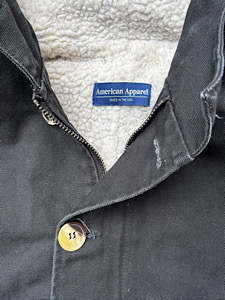 3w971 【usa製】American Apparel 黒ダック地 ボアジャケット (size:M)