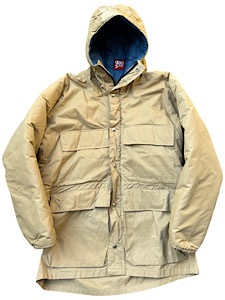 80年代頃 スタッグ トレイル カントリー 中綿マウンテンパーカ 程度はDEADSTOCKにかなり近い状態です。素材は60/40クロス仕様。カラーはベージュ/ネイビー。ネイビーの部分が中綿仕様になっています(袖も中綿)。ジッパーはデカTALONのW−ZIP仕様。 サイズ 着丈80CM、身幅61,5CM、袖丈53,5CM(脇から)/MEN’Sサイズ S位 状態A